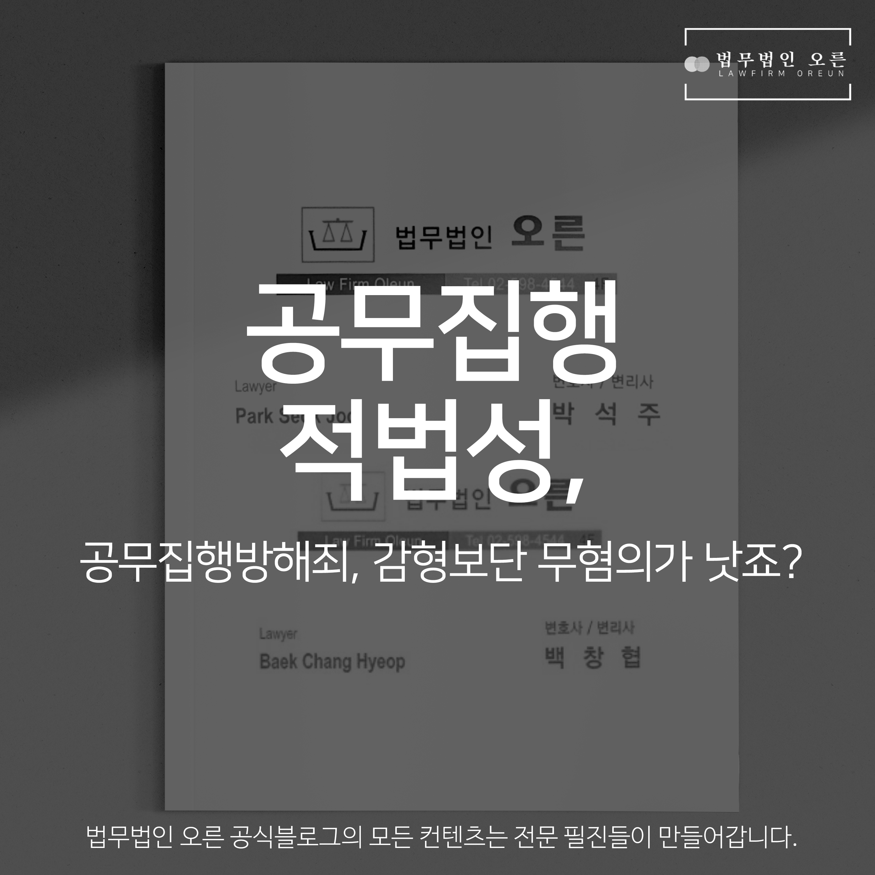 안녕하세요, 공무집행방해 사건 전문 변호사 법무법인 오른입니다.